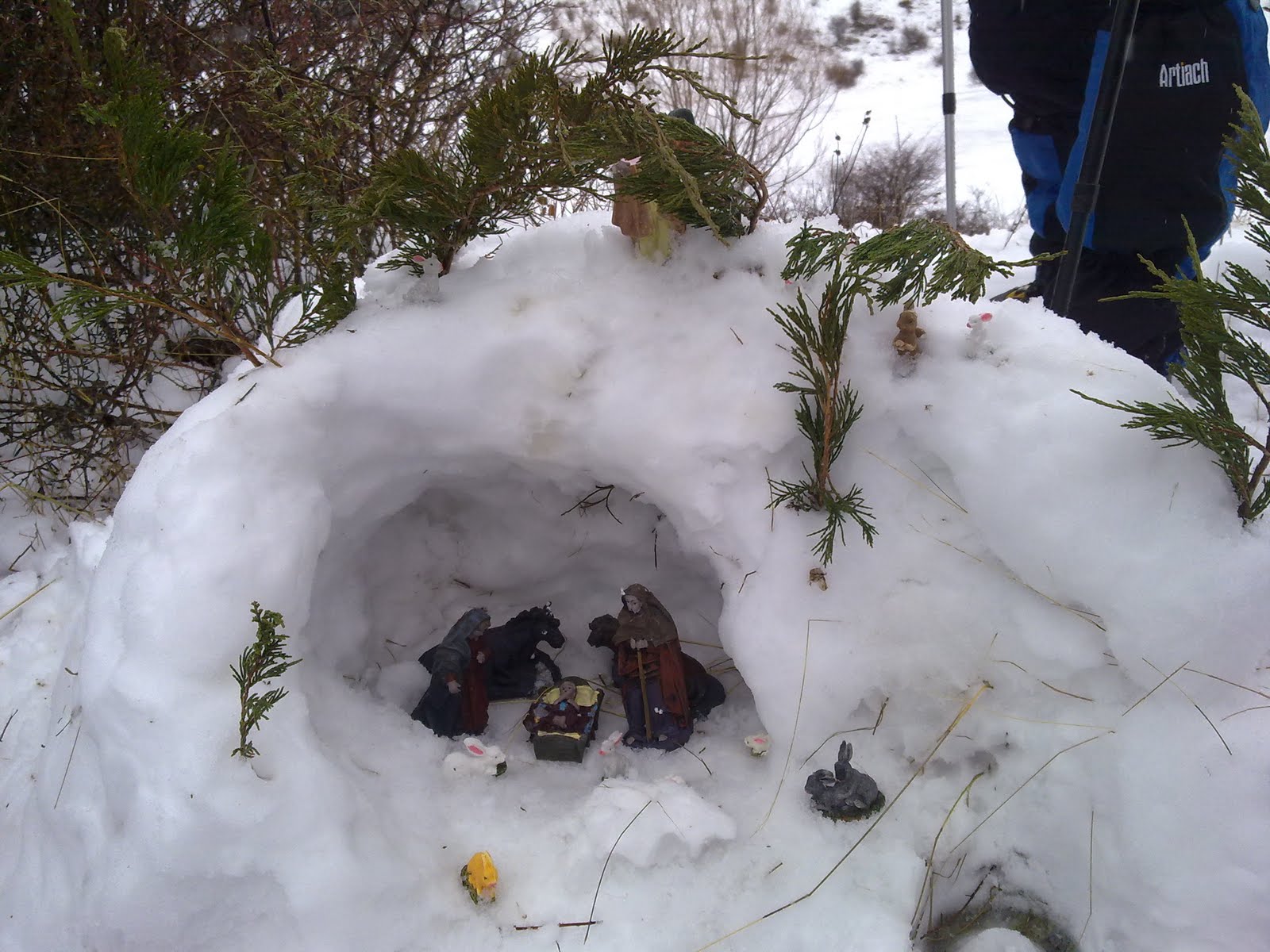 Como todos los años hemos vuelto a realizar la actividad del Belén de Cumbres. Este año debido a las condiciones climatológicas, no llegamos a la cumbre, pero nuestro objetivo era montar el Belén y contra viento y marea conseguimos nuestro propósito.